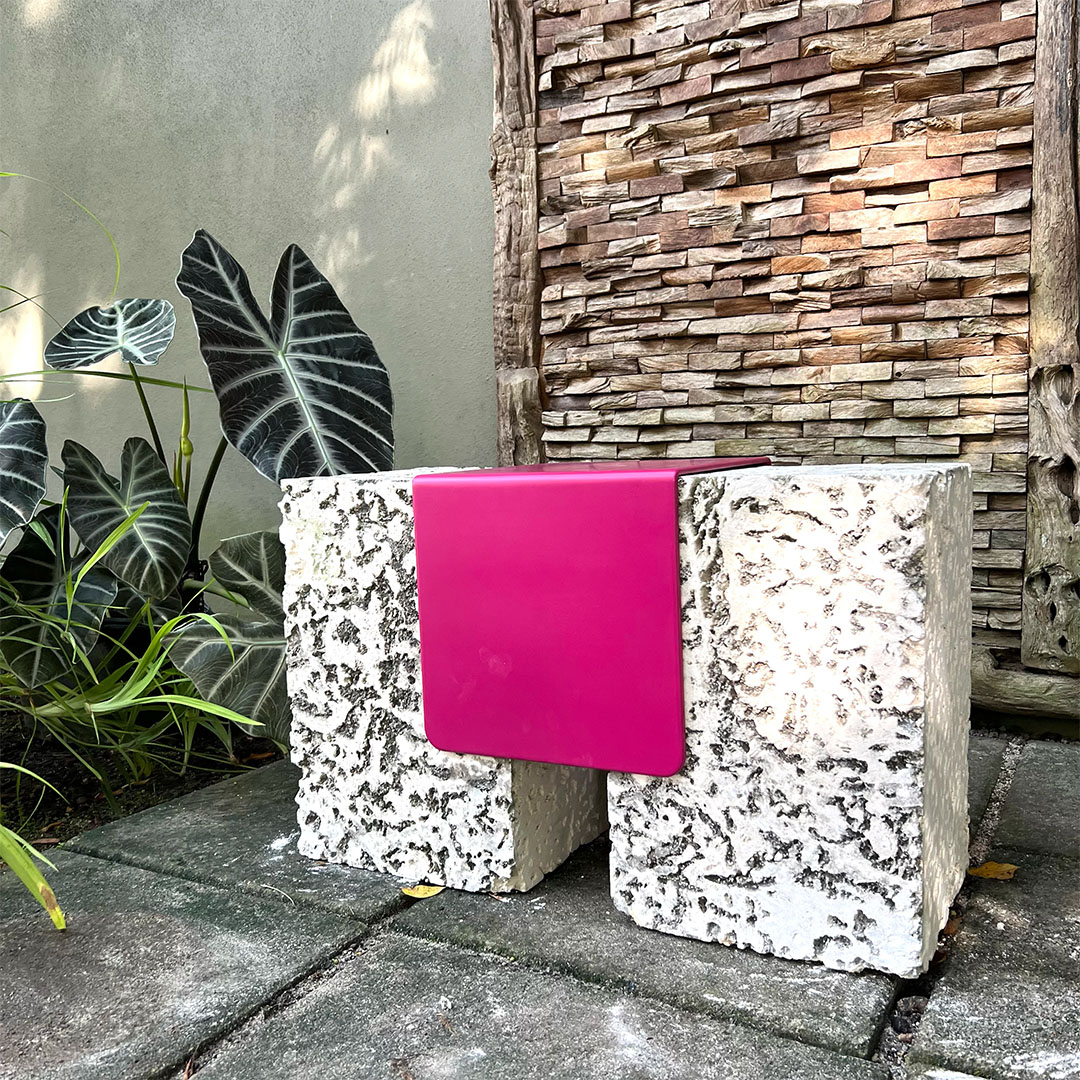 Engineered for flexibility, the components are fully customizable, interchangeable, and can be configured into site-responsive groupings or left as singular statements. The interplay of raw, geological material and fluid metallic surfaces invites dialogue between permanence and movement—ideal for interior or exterior installations that seek to integrate art, materiality, and utility.
